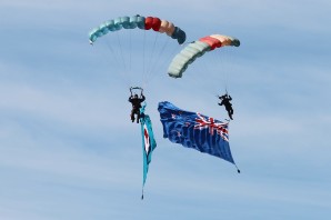 The RrNZAF skydiving team, Kiwi Blue, is a regular display at Warbirds Over Wanaka. The team is made up of members of the RNZAF Parachute Training and Support Unit. Their display traditionally features lots of smoke and the flying of the New Zealand and RNZAF flags.